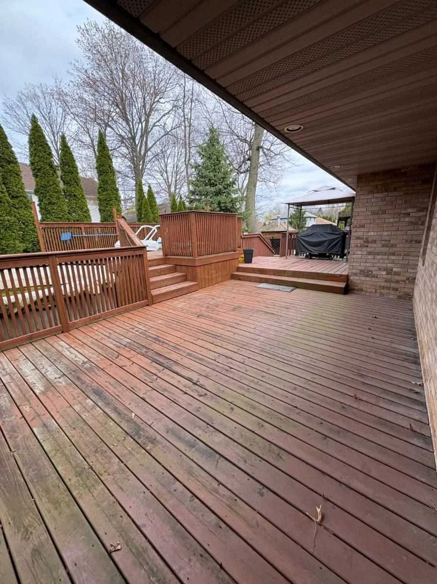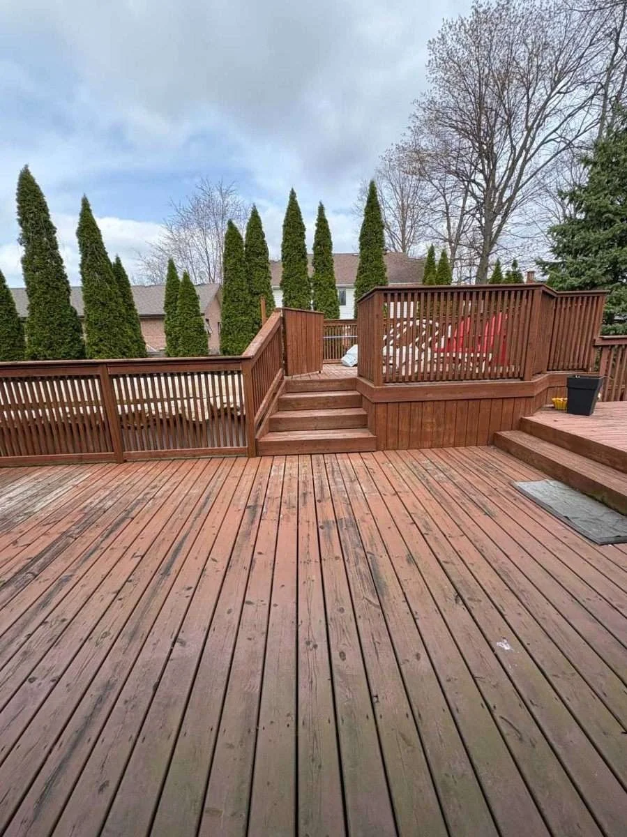 At Top Tier Painting, we provide professional deck and fence staining services in Windsor-Essex designed to protect and restore outdoor wood surfaces. From decks and fences to pergolas and exterior wood features, our team uses thorough cleaning, sanding, and premium stain products to deliver durable, weather-resistant finishes that enhance natural beauty and extend the life of your wood.